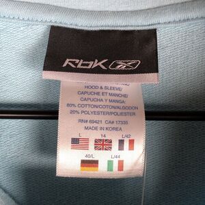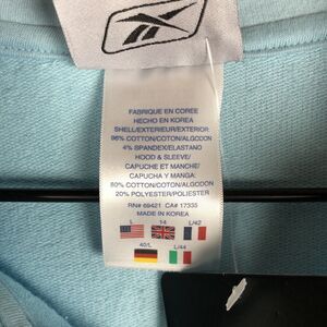 This '06 NWT RBX Velour Set includes a blue zip hoodie and wide leg pants with an embroidered accents. Made of a comfortable cotton rich blend, this tracksuit is perfect for many occasions. The mix of cotton jersey knit and velour fabric type adds a touch of interest to this already stylish set. The jacket eatures a hooded neckline, full zip closure, and pockets for added convenience. The pants feature a drawstring/elastic waist, wide legs, and a back pocket. Size Large.