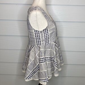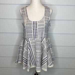 STYLE: peplum, fully lined, sleeveless, drop waist, tank, boho / bohemian, Aztec design