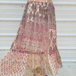 NWT RD & Koko Tiered Boho Midi Peasant Maxi Skirt A-Line Elastic Waist Sz M
