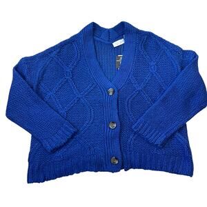 NWT RD Style Oversized Cable Knit Button Up Cardigan size Medium Royal Blue