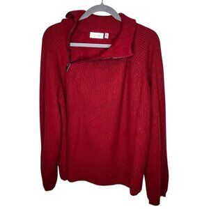 NWT RD Style Red Ribbed Knit Pullover Sweater Half-Zip Mock Neck Size L