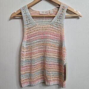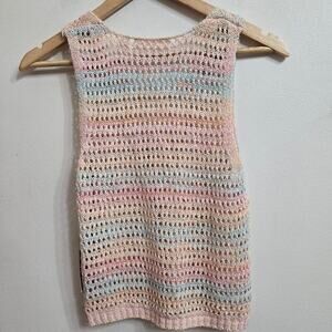 NWT RD Style Womens Pastel Rainbow Open Knit Tank Top Size M Striped Semi Sheer