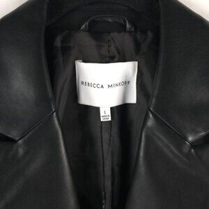NWT REBECCA MINKOFF BLACK Faux Leather Blazer Jacket 2 Button & Pockets Sz M & L