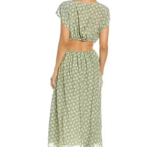 Cutout Silk-Blend Midi Dress In Suzanne Fleur Jadeite Combo With Elasticized Cutouts At Waist And Side Seam Pockets