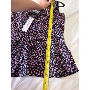 NWT REBECCA TAYLOR Sleeveless Wild Rose Black Pink V-Neck Silk Blouse Tank Size