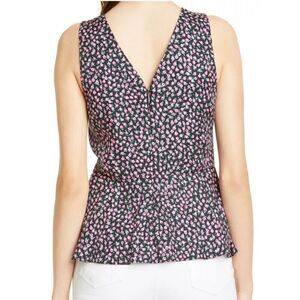 NWT REBECCA TAYLOR Sleeveless Wild Rose Black Pink V-Neck Silk Blouse Tank Size 00