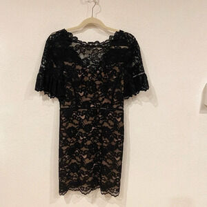 NWT REBECCA TAYLOR open back short sleeve black lace dress Size 4