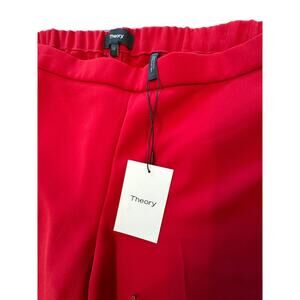 Elevate your wardrobe with these stylish red Theory pants. These dress pants are perfect for any occasion and feature a pull-on closure for comfort. The size 12 pants are made for regular size types and are a great addition to any woman's closet. The rich red color adds a pop of color to any outfit and the brand name Theory ensures quality. Perfect for both casual and formal occasions, these pants are a must-have.