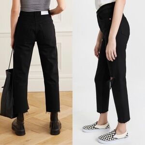 NWT RE/DONE 70s High Rise Rip Knee Raw Hem Ankle Crop Stovepipe Straight Jean 26