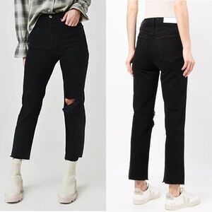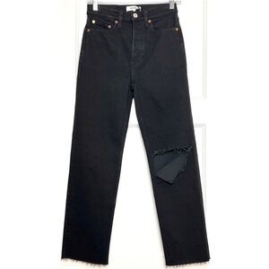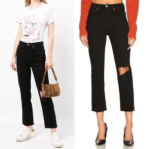 NWT RE/DONE 70s High Rise Rip Knee Raw Hem Ankle Crop Stovepipe Straight Jean 26