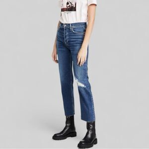NWT RE/DONE 70’s High Rise Stove Pipe Distressed Ankle Jeans in Darkworn Size 30