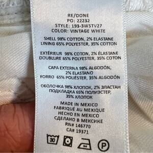 NWT RE/DONE 70s High-Rise Stove Pipe Jeans Vintage White sz 27 Intermix Revolve