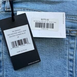NWT RE/DONE 90s High Rise Ankle Crop Destroy Sanded Blue Size 28
