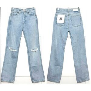 NWT RE/DONE 90s High Rise Light Wash Distressed Denim Loose Straight Leg Jean 26