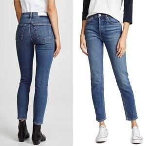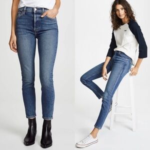 NWT RE/DONE 90s High Waist Distressed Stretch Denim Ankle Cropped Slim Jeans 26