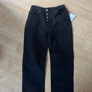 NWOT RE/DONE High-Rise 70s Stovepipe Straight Leg Cutoff Jeans Black size 29