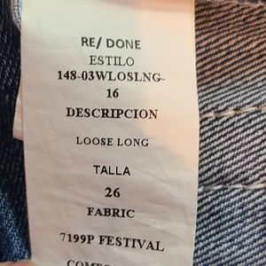 NWT RE/DONE Loose Long Bay Fade Blue Jeans Women's (26) Slouched Baggy Hem-$295