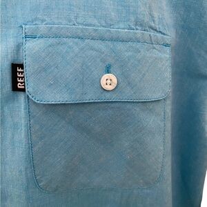 NWT REEF Sky Blue Short Sleeve Collared Shirt Men M Medium