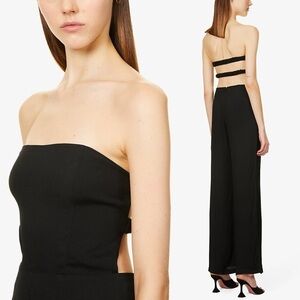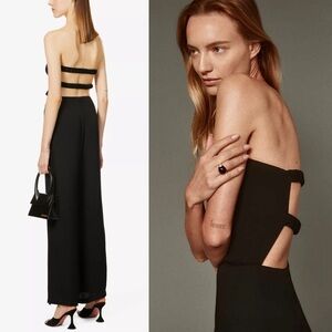 NWT REFORMATION 70s Strapless Crepe Open Back Ruched Straps Wide Leg Jumpsuit 0