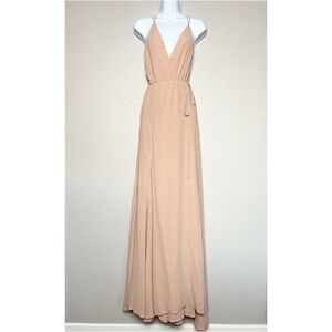 NWT REFORMATION Beige Crepe Sleeveless Strappy Open Back V-Neck Wrap Maxi Gown 4