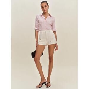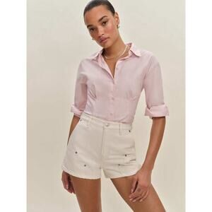 NWT REFORMATION Blake High Waist Utility Denim Shorts in Fior Di Latte White 28