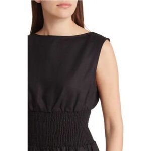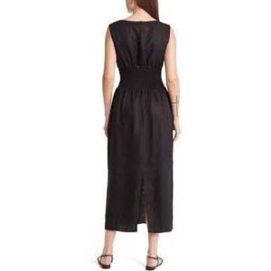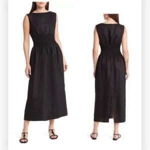 NWT REFORMATION Davie Smocked Waist Linen Dress in Black 2 $248