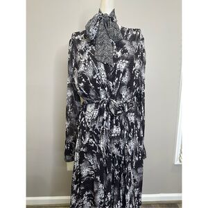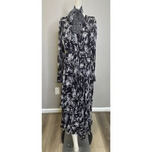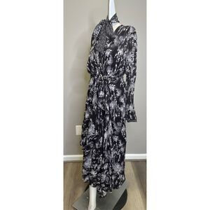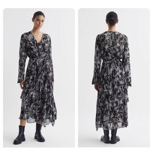 NWT REISS CALLIE BELTED RUFFLE PRINTED MIDI DRESS IN BLACK SIZE US 8 $475