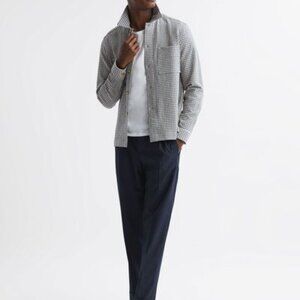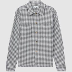NWT REISS Men's Cathu Check Twin Pocket Overshirt Grey/White Size M