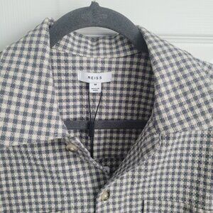 NWT REISS Men’s Cathu Check Twin Pocket Overshirt in Grey/White, Size Medium (M). A refined take on rugged styling, this overshirt by British brand REISS is crafted from a soft brushed fabric and features a classic check pattern, button front closure, and two chest flap pockets for a clean, utility-inspired look.