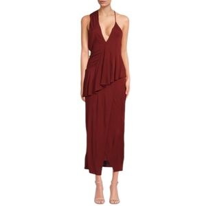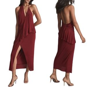 NWT REISS Xena Asymmetric Strappy Open Back Cocktail Dress in Dark Red Sz. 6