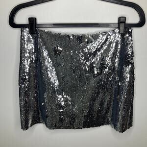 NWT REMADE MARQUES ALMEIDA Sequinned Mini Skirt Silver Medium 6