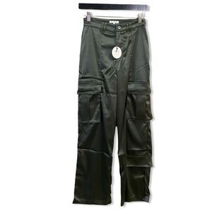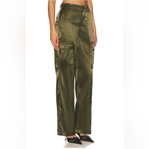 NWT REMI x REVOLVE Sydney Cargo Pant Dark Green satin finish wide leg loose S