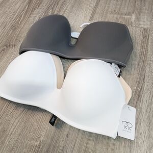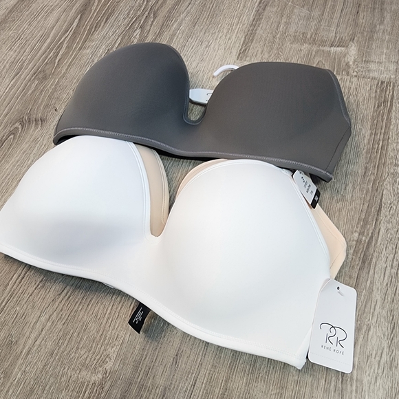 NWT RENE ROFE 3 PC No Underwire Bra Set Gray White Nude 38D