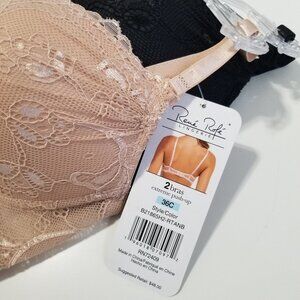 NWT RENE ROFE Extreme Push Up 2 Pack Bras Color Black/Beige Size 36C