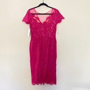 NWT RENE RUIZ COLLECTION Pink Illusion Neckline Lace Dress sz 6
