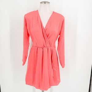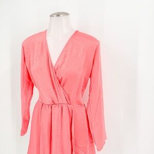 NWT RESA Iris Bow Dress Crinkle Satin Coral Pink Medium