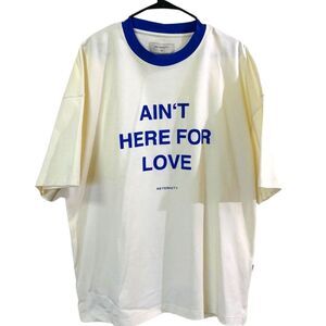 Brand new with tags RETERNITY Mens oversized graphic t-shirt. Features a bold blue slogan AINT HERE FOR LOVE and a contrast blue collar. Made in Europe quality you can feel.