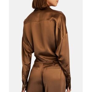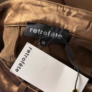 NWT RETROFETE Cognac Satin Low Rise Wide Leg Tailored Eliza Trousers M