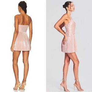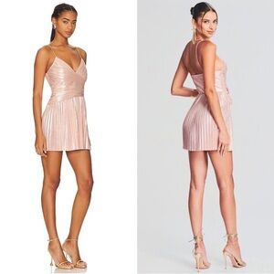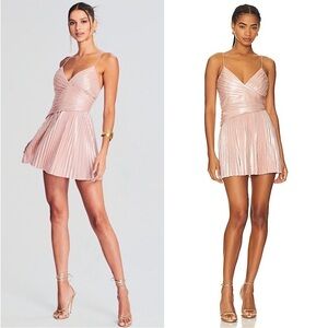 NWT RETROFETE Metallic Ballet Pink Pleated Sleeveless Crossover V-Neck Dress L