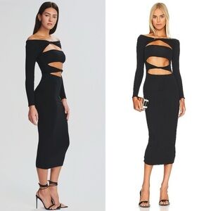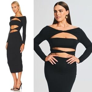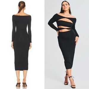 NWT RETROFETE SER.O.YA Off Shoulder Long Sleeve Cutout Twist Front Midi Dress L