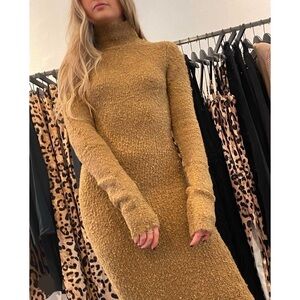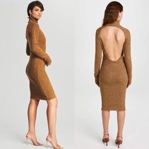 NWT RETROFETE SER.O.YA Wool Blend Long Sleeve Open Back Teddy Sweater Dress L