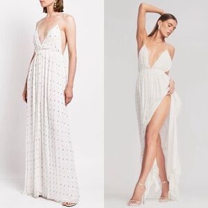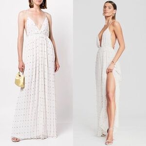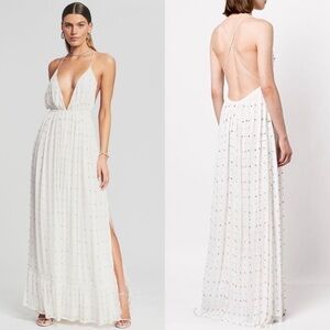 NWT RETROFETE Silk Crystal Embellished Open Back Sleeveless Plunge V-Neck Gown M