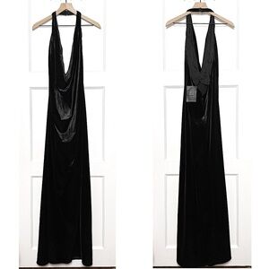NWT RETROFETE Velvet Halter Draped Plunge Cowl Neck Open Back Sleeveless Gown S