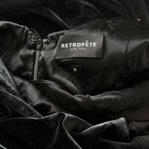 Channel timeless elegance in this Retrofête gown. This velvet dress features a flattering draped design and a daring plunging neckline.