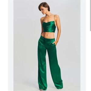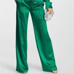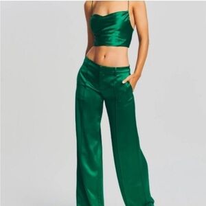 NWT RETROFETE eliza satin pant in emerald