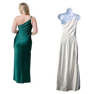 NWT REVELRY Jade Satin 77778 One Shoulder Maxi Bridesmaid Dress White Pearl Sz12