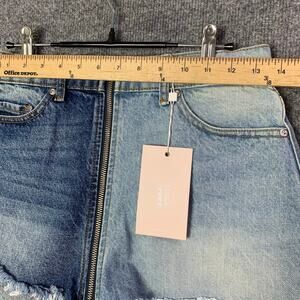 NWT REVICE Women's Yin Yang Two Tone Denim Zippered Raw Hem Shorts Size 27
