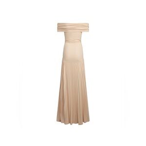 NWT REVOLVE Lioness Field of Dreams Maxi Dress Off Shoulder Pleated Oatmeal XL