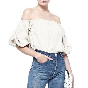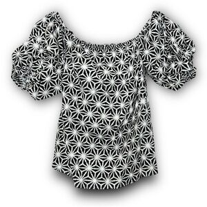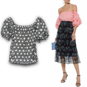 NWT REVOLVE PETERSYN 70s Off Shoulder Puffed Short Sleeve Geo Print Cotton Top M