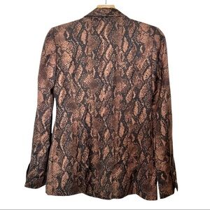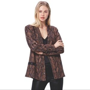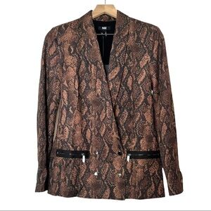 New with tags. The Karissa blazer from Paige is designed in a brown and black snake printed tencel, featuring double breasted press stud fastening and faux front zip fastened pockets for edginess.